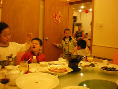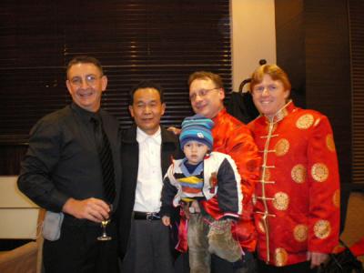 Hier kommt wie versprochen die Zusammenfassung der Tollen Tage hier. Nachdem sich der Jubel anlässlich meines Geburtstages etwas gelegt hatte, feierten meine Tante Sarah und ihr Freund Robert, der Australier, am 28.01.2009 Verlobung: ![]() Dabei traf ich dann zum zweiten Mal in meinem Leben auf meinen chinesischen Opa (= yeye), der im Gegensatz zu meiner Oma nicht bei uns wohnt. Die beiden halten es leider ncht zusammen aus: ![]() Es kam dann noch zum Gruppenbild der Herren: ![]() V.l.n.r: Peter (der Freund meiner Tante Julia), mein Opa Jin Fu, ich, Papa und Robert. Auf dem Foto gibt es genau einen richtigen Mann. Einmal dürft Ihr raten, um wen es sich handelt:-) Am nächsten Tag, also den 29.01, hieß es früh aufstehen, um Sahra und Robert zu verabschieden, die schon mal nach Hongkong übergesetzt sind. Von dort ging es dann ab ins Land der Kiwis, Koalas und Kängurus. Danach war ich erst mal müde und brauchte eine Pause. Wie immer beschützt von Mama: ![]() Denn am Abend desselben Tages ging das Feiern weiter. Alle Jahre wieder feiert diese Cousine meiner Mama auch Verlobung. Diesmal handelt es sich bei dem Auserwählten um einen großenvorsitzendenstylischen Herren aus Peking. (Den Namen merken lohnt sich kaum, denn ein Jahr ist so schnell rum kicher): ![]() Auch die Schwester der "Braut" und meine Uroma schauen nur noch stumm auf dem ganzen Tisch herum: ![]() Aber wenigstens waren wie immer viele Kinder dabei. Diesmal haben wir unsere Kräfte im Kampfschreien gemessen. Die Kleine im Hintergrund hat gut vorgelegt: ![]() Aber mein Bruder Mathew war natürlich besser: ![]() Allerdings darf man die Rechnung nie ohne den King im Ring machen: ![]() Na, wer hat's erfunden ? So nachdem ich euch über die hiesige Partylage in Kenntnis gesetzt habe mache ich für heute Schluß. Das nächste Mal gibt es dann eine Reportage aus dem Zoo. LG und Gute Nacht Euer Junwen ... link ... older stories