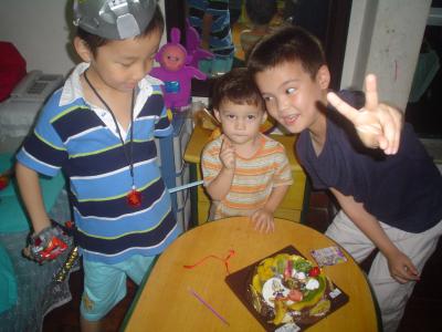 Hallo ihr lieben Leser. Habe ich eigentlich schon mal erwähnt, dass ich total auf Monster stehe ? Angefangen hat alles mit diesen Spielkarten und diesen kleinen Bällen, die sich öffnen, sobald sie mit einem Magneten in Berührung kommen. In den Bällen und auf den Karten befinden sich Monster. Jede Art von Monster. ![]() Zuerst mußte ich Mathew besiegen, um an seine Karten heranzukommen und seit dem bekämpfe ich die Monster persönlich. Die Dinger stecken auch überall. Verdächtig oft an Orten, an die meinen Eltern mich nicht sehen wollen. Ich denke die sorgen sich um meine Sicherheit. Wenn die wüßten, was für ein Monsterexperte ich schon bin. Letzten Sonntag zum Beispiel. Da hatte meine chinesische Uroma Mei Xiang Geburtstag -es war der 91. - und es gab eine kleine gekaufte, furchtbar süße, Geburtstagstorte. Oben drauf hat Mama dann zwei Kerzen aufgestellt und angezündet. Als ich die Lichter sah, war mir sofort klar, dass es sich um Firemonster handeln muß. (Ist auch mein Lieblingswort zur Zeit.) Auf jeden Fall hat Papa das mal als kleinen Film festgehalten. Leider waren die Lichtverhältnisse nicht so gut, aber man kann trotzdem was erkennen. Außer mir wirken mit: Mama, Mathew, Guan Kou (Nachbarsjunge), meine Uroma Mei Xiang (kurz im Hintergrund) und Papa (Off-Ton). Nach dem Kuchen ging es dann weiter mit unserer Jagd auf Monster-Man. (Ob ihrs glaubt oder nicht, das Ding hat Ähnlichkeit mit Papa:-) Bis zum nächsten Mal. LG aus Shenzhen Junwen ... link Montag, 1. Juni 2009