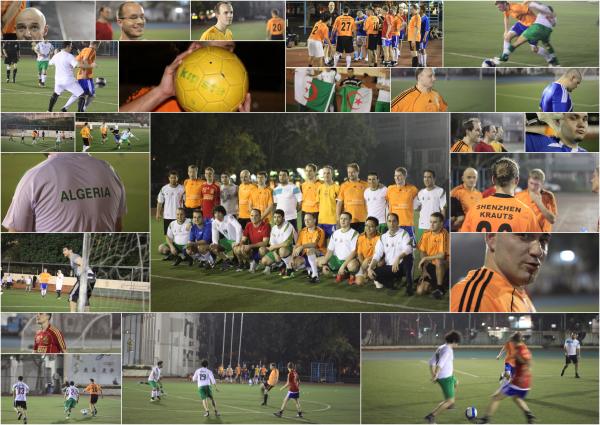 ![]() Letzten Montag hatten wir eines unserer wenigen Auswärtsspiele. Zu Gast waren wir bei einem Team, welches ausschließlich aus Algeriern besteht. Hier präsentiere ich mal Rainers Spielbericht, der die Sache ganz gut trifft: ***************************************** Hallo Kicker, Es gibt Spiele, die verlierst Du und es gibt Spiele, die KANNST Du nicht gewinnen. Solch ein Spiel bestritten wir am vergangenen Montag. Spieleraufstellung: Jens, Dirk, Thomas E., Alphan, Jimmy, Calvin, Fabian, Marc, Martin B., Martin S., Jason, Rüdiger, Sebastian, Axel, Jochen, Christoph, Rainer Der Schiedsrichter wurde [sollte] vom Platz gestellt. [werden] Der Spielbeginn verlief schon in den ersten Minuten verheißungsvoll. Obgleich uns der Platz bis dato unbekannt, fanden wir schnell ins Spiel. Nach 10 Minuten hatte der Ball sein erstes Rendezvous mit dem Pfosten, eingeleitet von Fabian. 11. Minute: Calvin Schuss, knapp vorbei! 12. Minute: Nach einem Pass von Calvin in den freien Raum nutzte Dirk die Chance und schob den Ball souverän mit viel Gefühl am Tormann vorbei. 1:0 Shenzhen Krauts! Was ein Auftakt, was für ein Tor! Klasse Spielzug, super Abschluss. 24.Minute: Sebastian, abgezogen aus 25 Metern, dem Torhüter rauscht es noch heute im Ohr! Wahnsinns strammer Schuss auch dieser knapp vorbei. Nach einem Freistoß ausgeführt durch Thomas Eisner, Kopfball Dirk, nochmals knapp drüber. Mit 1:0 ging es in die erste Pause. Nach der Hinrundenniederlage eine Woche zuvor waren wir mit dem bisherigen Spielverlauf sehr zufrieden. 1:0 Führung und Chancen en masse! 35.Minute: Kurz nach der ersten Halbzeit bekam der Gegner einen Elfmeter zugesprochen. Anlauf – Schuss – GEEHAALLLTTTTEEEENNNNNNN! Unglaublich dieser Jason. Hält der das Ding. Die Partie nahm an Schärfe zu. Der Schiedsrichter schien ein ums andere Mal sichtlich überfordert. Gerade die Abseitsentscheidungen vielen mehrfach äußerst strittig aus. 41.Minute: In der 41. Minute gelang dann der Anschlusstreffer. Neuer Spielstand 1:1 44.Minute: Davon unbeeindruckt traf Dirk per Kopfball leider nur den Pfosten. 50.Minute: Sehenswertes Solo von Thomas Eisner über den halben Platz über rechts Außen. 58.Minute: Tor ,Tor, Tor Shenzhen Krauts! Aber was macht der Mann in Schwarz? Er gibt den Treffer NICHT! Was in aller Welt hat er gesehen, was sonst keiner gesehen hat? Keine Zeit zum Nachdenken > 59.Minute: Konter – Gegenzug – klares Abseits! Aber was ist denn jetzt los, Tor!?!?! Der Schiedsrichter schüttelt mit dem Kopf, zeigt auf dem Anspielpunkt im Mittelkreis. Die Situation explodiert, Wasserflaschen fliegen in Richtung des schwarzen Mannes. Die Situation droht zu eskalieren, aller stürmen auf dem Platz. Rainer hat Mühe die Jungs zu beruhigen. Zu offensichtlich diese Fehlentscheidung. Zweite Pause Spielstand 1:2 Nach 10. Minuten geht es weiter. Die Begegnung gerät nun vollends aus den Fugen. Thomas Eisner wird nach dem der Ball bereits gespielt wurde von hinten in die Hacken getreten. Eigentlich eine klare Sache, Rot muss her! Aber der Unparteiische hat seine eigene Farbvorstellung und zeigt: Nichts! Vielleicht lag es dran, daß er die beiden Karten gar nicht mithatte oder farbenblind ist! Die Entscheidung ist völlig unverständlich und in keinster Weise nachvollziehbar. Es sollte nicht die einzige krasse Fehlentscheidung bleiben. 80.Minute: Tor: 1:3 Gleich drei gegnerische Spieler stehen im Abseits und natürlich, der Treffer wird gegeben. Jetzt brechen alle Dämme los, niemand ist mehr zu halten, alle stürmen in Richtung Schiedsrichter. Erneut gelingt es Rainer mit lauter Stimme die eigenen Spieler, zu beruhigen und weiterzuspielen. 85.Minute: Eckball für die Gäste, welcher direkt verwandelt wird. Jason war da nicht ganz auf der Höhe, aber das kann nach ein solchen turbulenten Spiel schon passieren. Er hatte ja schon super gehalten an diesem Abend. Kurz vor Schluß 2:4 durch Marc, Schuss aus ca. 20 Metern geradewegs in die Maschen. Fazit: Diese war in der Geschichte seit des Bestehens der Shenzhen Krauts, das sicherlich turbulenteste. Diejenigen die mit dabei waren, werden sich sicherlich noch lange daran erinnern. Auch Jochen, der sein vorläufig letzes Spiel in Blau/Weiß bzw. Orange/Schwarz bestritt. Er wechselt aus beruflichen Gründen von Shenzhen nach Guangzhou. Wir bedauern seinen Weggang sehr, wünschen ihm aber für seine berufliche Zukunft alles Gute. Verletzungen: Leider hat sich Axel gegen Ende des Spieles eine ernsthafte Bänderdehnung im Fußgelenk zugezogen. Auf ärztliches Anraten, wurde der Fuß zum stabilisieren für 1- 2 Wochen in Gips gepackt. Auch hier die besten Genesungswünsche der Truppe. Am kommenden Montag spielen wir in Futian auf „unserem“ Platz untereinander. Ich hoffe auf rege Teilnahme. Und wie immer and dieser Stelle, wünscht Euch Schreiberling Rainer, eine erfolgreiche Arbeitswoche, viele Aufträge, zufriedene Kunden und wenig Reklamationen. Gruß Rainer ************************************** ![]() Wer sich jetzt übrigens über die Anzahl der Pausen wundert, wir haben auf Wunsch des Gegners 3x 30 Minuten gespielt, anstatt der üblichen 2x 45:-) Meiner Meinung ist Rainer allerdings zu gnädig mit dem "Unparteiischen" ins Gericht gegangen. Da er im ersten Drittel ganz vernünftig gepfiffen hat, war sein Einbruch im zweiten überhaupt nicht nachvollziehbar. Es sei denn, er wurde von der anderen Seite manipuliert. Dafür spricht auch einiges. Schade an der Sache ist vor allem: Die Algerier haben gut gespielt und hätten die Unterstützung des Schiedsrichters eigentlich gar nicht nötig gehabt. Es wäre ein enorm spannendes Spiel geworden, wenn es fair geblieben wäre. So war es nur ein Witz. Gute Besserung an Axel. Alles Liebe an Jochen. Guangzhou ist ja nicht so weit weg. Wenn Dich die Sehnsucht packt....:-) Schön war allerdings, dass diesmal wieder Fotos gemacht worden sind. LG aus Shenzhen Jens ... link ... older stories
