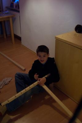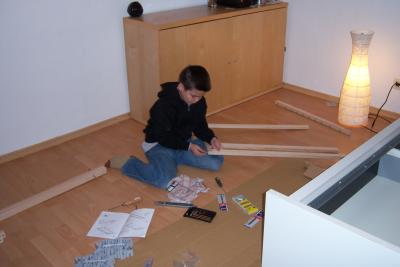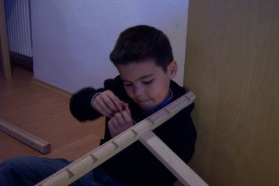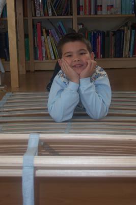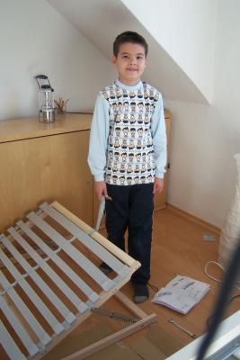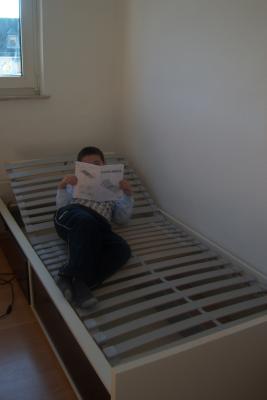 Tante Birgit hatte schon ein Zimmer für Mathew hergerichtet, nur das Bett mußte noch aufgebaut werden. Hier legt Mathew selbst mit Hand an und zeigt großes handwerkliches Geschick: ![]() Fangen wir doch mal mit dem Schrauben an ![]() Na geht doch! ![]() Das große Ganze fest im Blick... ![]() ...und vorsichtshalber noch mal auf den Plan geschaut. ![]() Ein Lattenrost ist kein simples Gebilde, dieser hier nimmt aber trotzdem Formen an. ![]() Fertig! ![]() Der Stabilitätstest....mmmhh hält. ![]() Den Lattenrost rauf aufs Bettgestell und die Endkontrolle vornehmen. ![]() Jetzt muss nur noch die Matratze drauf und schon hat Mathew sein Bett fertiggestellt ![]() ...und wenn man beim Lesen einschlafen sollte, dann macht das überhaupt nichts aus:-) Mathew, wir hier sind sehr stolz auf Deine LeistungI Abgesehen vom Bettenbauen hat das mit der Anmeldung zur Schule geklappt und Mathew wird ab den 14. zur Grundschule gehen. Es geht voran. LG aus Shenzhen Jens ... link ... older stories