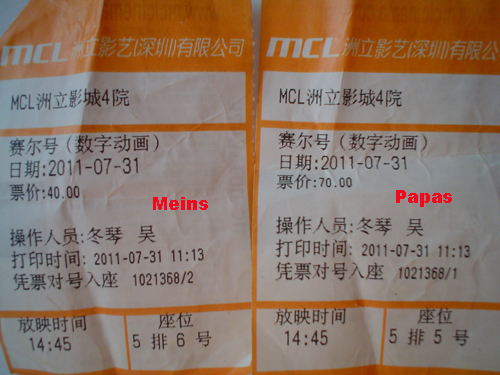 ![]() Hallo Ihr Lieben. Was richtig toll ist, hier gibt es selbst im Kindergarten eine Art Zeugnis...naja...wenigstens eine Urkunde. ![]() Da steht, dass ich Potential habe. Nichts wirklich neues also:-) *** Am Sonntag gab es noch eine Premiere: Mein erster Kinobesuch. ![]() Papa durfte auch mit Angeschaut haben wir uns 赛尔号 (SEER - Space EnErgy Robot) ![]() War bestimmt nicht das letzte Mal. LG aus Shenzhen Euer Junwen ... link ... older stories