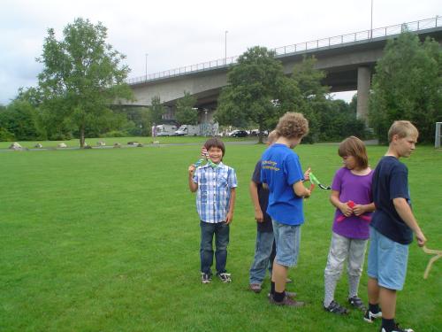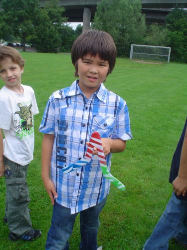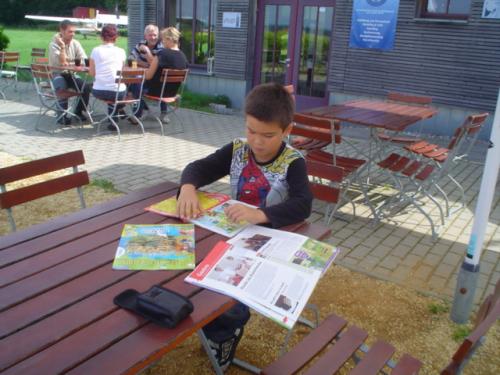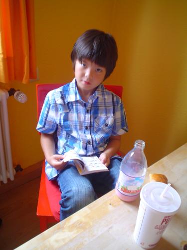 ![]() Das Foto eines Fotos Vom 04. August bis 14. August war ich mal wieder in Deutschland. Zunächst in Braunschweig und dann mit dem Zug nach Aschaffenburg, wo Mathew und Birgit schon auf mich warteten. ![]() Lesen am Frühstückstisch Zuvor hatte Mathew schon in einem Ferienkurs einen Bumerang hergestellt und der sollte jetzt auch getestet werden: ![]() Auf dem Weg zum Wurfplatz trifft Mathew eine Ente ![]() Mathews selbstgemachter Bumerang Da so ein Bumerang die Eigenschaft hat, eine Kurve zu fliegen - und im idealen Fall sogar zurückzukommt - muss die Wurfübung geordnet stattfiinden: ![]() Bitte beachtet den letzten in der Schlange ![]() Aufgerückt ![]() Die Totale ![]() Hier demonstriert Mathew den korrekten Transport eines Bumerangs... ![]() ...wie diese kragenbewärten Herren aus Australien bezeugen. Dann ging es wieder nach hause. ![]() Mathew vor seiner Sommerresidenz, Schloss Johannisburg Natürlich habe ich auch Mathews besten Freund Peter getroffen: ![]() Männlicher Kaffeeklatsch mit Peter und Jens. (Foto: Mathew) ...und der Weg zum Einkaufszentrum führt durch den Park Schöntal. Wenn man nicht aufpasst ist ein Besuch des Einkaufzentrums mit Mathew eher... ![]() ...ruinös:-) ...und obwohl jetzt Papa da war, wurden die täglichen Deutschübungen auch nicht vernachlässigt: ![]() Lektion 70: Unterzeichnung eines Staatsvertrages. Dann war es soweit, Mathew und ich machten uns auf nach Berlin, um Oma Heidrun zu besuchen und neue Abenteuer zu erleben, inklusive eines Friseurbesuchs. Der beste Tag für Mathew war sicher ein erneuter Besuch des Flugplatzes Bienenfarm. Birgits Papa hatte ihn nämlich nochmal zu einem Rundflug eingeladen. Zunächst ging es mit dem Regionalexpress von Berlin Spandau nach Paulinenaue*. ![]() Das Bahnhofsgebäude von Paulinenaue sieht aus der Ferne zwar gut aus, ist aber in der Tat verlassen und dem Verfall preisgegeben. Schade drum. Von dort aus ging es weiter mit dem Auto zum Gemeindeteil Bienenfarm, inklusive dem Flughafen. Dort angekommen ging es los: ![]() Während Kapitän Maxwitat noch die Flugzeughülle sichtet.... ![]() ...checkt Co-Pilot Liang-Richards schon mal die Instrumente. Über den Startrasen geht es dann himmelwärts: ![]() Unter den Wolken. ![]() Der Flugverkehrsknotenpunkt Bienenfarm aus der Vogelperspektive ![]() Auch Flugzeuge haben Rückspiegel.** Einen Looping, eine Rolle und einen Tiefflug über das Flugfeld später landeten wir wieder wohlbehalten auf dem Flughafen Bienenfarm. ![]() Mathew stellt seinen Berufswunsch klar.*** ![]() Zur Entspannung der Piloten gibt es auf Bienenfarm Comics und einen Imbiss... ![]() ...der auch gern mal angeritten wird ![]() Blick vom Flughafenrestaurant auf das Flugfeld. Karl-Heinz Maxwitat (mitte) schreitet zur nächsten Tat bzw. Flug. Schließlich ging es mit dem Regionalexpress zurück nach Berlin. Da es auf dem Bahnhof Paulinenaue weder einen geöffneten Ticketschalter noch einen Fahrscheinautomaten gibt, war dies die billigste Zugfahrt meines Lebens, denn sie kostete nicht mehr als ein Lächeln. ![]() v.l.n.r: Mathew mit seinem Nintendo und Pflegeopa Karl-Heinz. Allerdings fuhren Mathew und ich nicht direkt nach hause, sonder trafen uns noch mit meinem Freund Klaus, seiner Tochter Flori und seiner Freundin Claudia****. ![]() Klaus - jetzt langhaarig und mit Stoppelbart.LOL. ![]() Flori dagegen strahlend wie immer. Sehr spät ging es dann wieder zu Oma und damit war der Tag vorbei. Für mich ging dann auch mein Aufenthalt in Deutschland dem Ende entgegen, allerdings habe ich nicht vergessen, einen Gruss von Mathew an die Zurückgelassenen in Shenzhen videotechnisch aufzuzeichnen: Falls jemand nur Chinesisch versteht, dann hört er richtig. Mathews Ferien sind damit nicht zu Ende, sondern er wird noch mit Birgit nach Dänemark fahren. Auch darüber werde ich berichten.... LG aus Shenzhen Jens _____________________________________ Anhang: *Zwei Anekdoten zur Gemeinde Paulinenaue: - Obwohl der Name Bienenfarm darauf hindeutet, gibt es in der ganzen Umgebung keinen einzigen Imker. - Obwohl ein anderer Gemeindeteil den Namen Kamerun trägt, hält sich die Anzahl dunkelhäutiger Einwohner in engen Grenzen. **Tatsächlich wird dieser Rückspiegel selten dazu verwendet, den hinteren Flugverkehr zu beobachten, sondern kommt zum Einsatz, wenn man ein Segelflugzeug im Schlepptau hat. ***Kleiner Tipp: Es handelt sich dabei weder um Astronaut noch Lokomotivführer;-). ****Ich hatte natürlich auch ein Foto von Claudia gemacht, allerdings habe ich das gründlich verwackelt. Toll, Jens! ... link Mittwoch, 17. August 2011